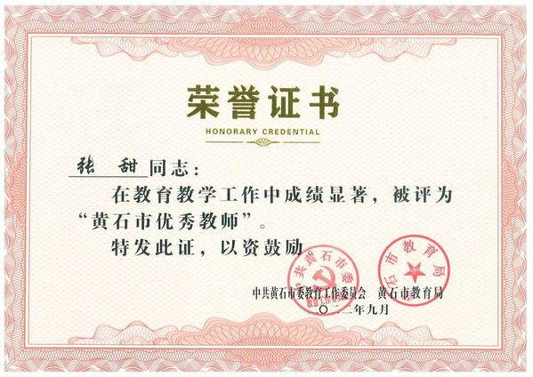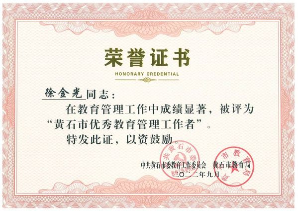 本网讯 秋风送爽果飘香,金声玉振誉满园。在中共黄石市委教育工作委员会、黄石市教育局2022年度优秀评选中,PG线上平台(集团)官方网站荣誉榜再添新篇。谨向以下教工表示祝贺!
