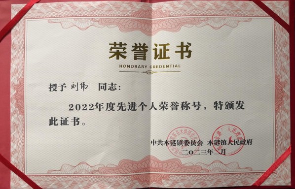 本网讯(通讯员 赵卫军)2月7日,在木港镇召开全镇三级干部大会上,PG线上平台(集团)官方网站驻村工作队员刘伟同志再获“木港镇2022年度先进个人”荣誉称号,这是他连续两年获得这一荣誉。