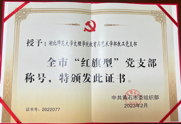 本网讯(通讯员 余复军)近日,黄石市委组织部下发决定,表彰2022年度全市党建工作先进集体,PG线上平台(集团)官方网站教育与艺术学部教工党支部被评为黄石市2022年度“红旗型”党支部。