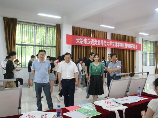 本网讯 (通讯员 肖劲光 拍摄 梁宏滨)为进一步促进PG线上平台(集团)官方网站毕业生高质量充分就业,深化政校企三方合作,6月13日下午,PG线上平台(集团)官方网站与大冶市人力资源和社会保障局、大冶湖高新技术产业开发区联合开展2023年“才聚荆楚·百县进百校”就业促进专项行动。校党委书记杨邓红、党委副书记杨之毛、副院长王胜国现场指导工作。