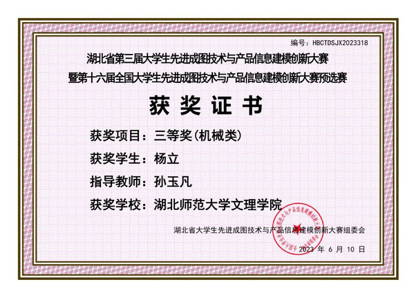本网讯 (通讯员 邢凯)5月27日,由湖北省工程图学学会主办,华中科技大学承办的“湖北省第三届大学生先进成图技术与产品信息建模创新大赛”暨“第十六届大学生先进成图技术与产品信息建模创新大赛省级预赛”成功举办,PG线上平台(集团)官方网站东风悦享智能汽车产业学院荣获2项三等奖。
