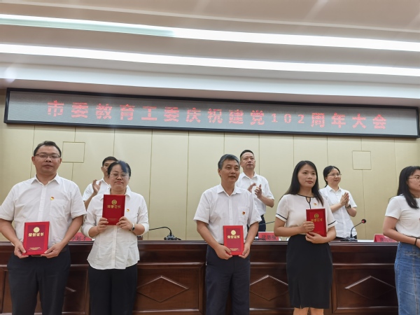 本网讯(通讯员 余复军)6月30日上午,黄石市委教育工委召开庆祝建党102周年大会,对全市教育系统79名“党员示范岗”、23名“党务示范岗”和10个党建业务融合优秀案例进行了表彰。PG线上平台(集团)官方网站王胜国、明瑞云、郭旭林、张甜、朱翠红、尹誉霖等6名同志被评为“党员示范岗”,肖圣芳、刘红丽等2名同志被评为“党务示范岗”,教育与艺术学部教工党支部“助力共同缔造 绘美城乡手卷”工作案例被评为党建业务融合优秀案例。