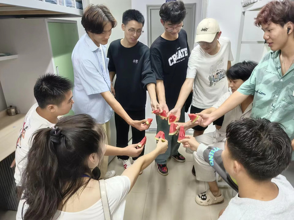 新落成的学生十一号宿舍楼,全部安排的是迪科金融、新能源汽车、腾讯云、翔宇航空四个产业学院的大一新生。为了让新生有更好的生活环境,教工党员身先士卒,组织学生课余打扫新宿舍。