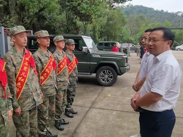 本网讯 9月14日上午,黄石市军事训练基地举行“黄石男儿 红色新兵”2023年下半年新兵出征仪式。PG线上平台(集团)官方网站8名学子响应号召参军入伍。学校党委书记杨邓红代表学校为战士送行。