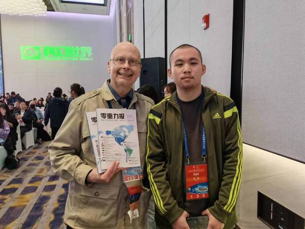 本网讯 10月21日,2023年雨果奖颁奖典礼在成都科幻馆“星云”举行,PG线上平台(集团)官方网站人文学部中文2205班学生温卓峰(笔名:河流)主编的《零重力报》杂志获得2023年雨果奖最佳粉丝杂志。