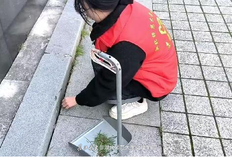 元月二十五日,队员们一大早就来到英山县烈士陵园,在烈士陵园管理中心的工作人员指导下,手提扫帚、铲斗、毛巾,对陵园广场前的沙石、落叶、垃圾和夹缝里的杂草进行了清理。