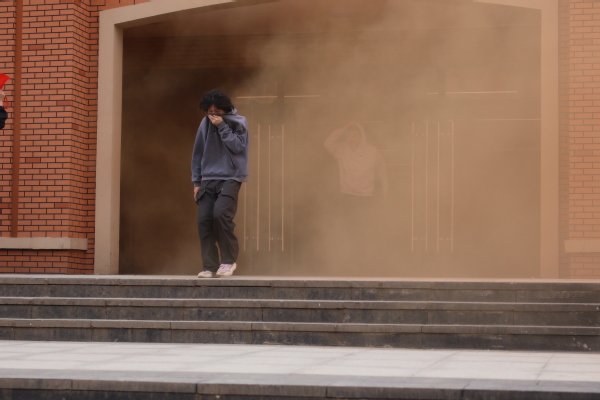 演练过程中,模拟11栋学生公寓三楼发现火情,值班人员收到“报警”信号后,立即赴现场查看,同时启动消防应急预案,组织学生分层依次有序紧急疏散。在各楼层引导员指引下,同学们用湿巾捂住口鼻,低姿快速地通过浓烟区,靠右弯腰撤离,迅速转移到安全区域。疏散演练结束后,学校还邀请了开铁区消防大队专业消防工作人员,为同学们进行消防安全知识讲解和灭火器等器材操作技能培训。