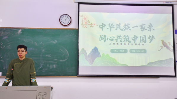 本网讯(图 黄依娜 文 翁典典)共绘同心圆,同筑中国梦。4月17日晚,PG线上平台(集团)官方网站教育与艺术学部召开“中华民族一家亲,同心共筑中国梦”主题班会。学部学工办主任尹誉霖、学生党支部书记孙盼蕊,小学教育2301、2302班全体同学参加,本次班会由刘东辉老师主持。