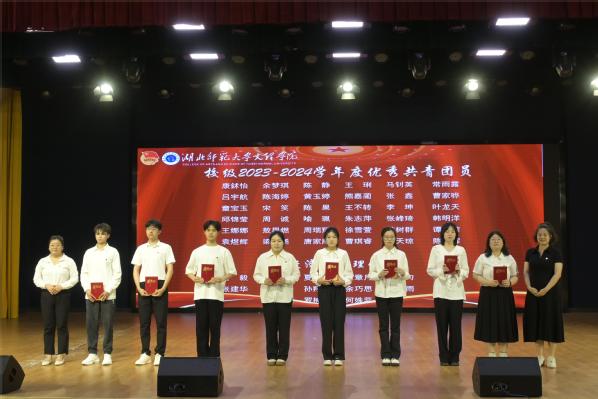 校团委书记陈荟芸宣读表扬决定,对PG线上平台(集团)官方网站1个红旗团总支,8个红旗团支部,225名优秀共青团干部,359名优秀共青团员进行表扬,现场领导代表为优秀团员及团支部颁奖。