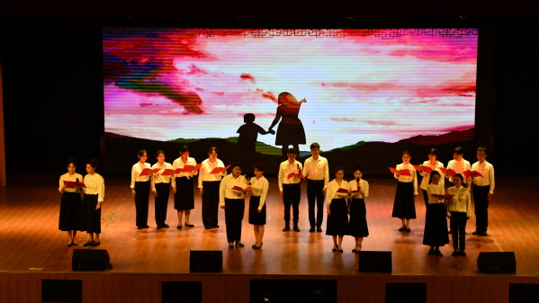 古筝合奏经典红歌《洪湖水浪打浪》,大气悠扬,带观众感受不一样的民族风情。中华经典诵读《盛开的民族团结之花》用铿锵有力的声音演绎了中华民族团结奋进的壮丽篇章。歌舞表演《心声》以优美的舞姿,再现了藏族人民的原始美和心灵美,“唱支山歌给党听...”,体现的是“五个认同”扎根在各族人民心中。