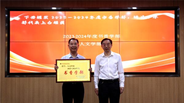 人文学部党总支书记周景斌在发言表示,人文学部荣获“书香学部”的称号不仅仅是一个荣誉,更是一种责任和使命。我们应该养成“读书、思考、创新”的习惯,不断提高自身的文化素质和综合能力。