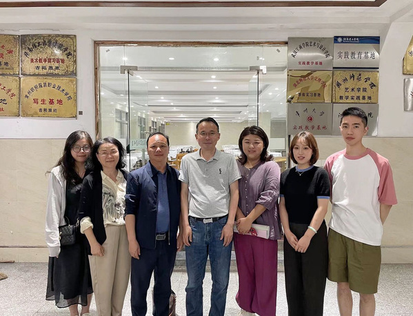 王胜国一行深入考察了解美术专业实践基地环境,观摩实践教学现场,与实践基地负责人进行细致交流,深入了解同学们的学习和生活状况。