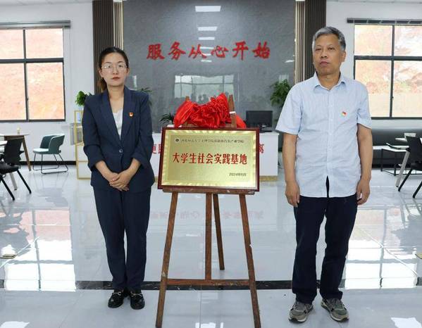 新能源汽车产业学院院长许新山和刘晨静共同为“大学生社会实践基地”揭牌。
