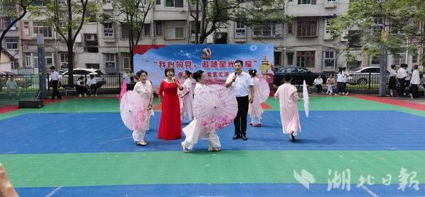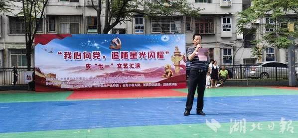 湖北日报客户端讯(通讯员吴若昀)6月17日,黄石市黄石港区覆盆山社区党委、覆盆山社区新时代文明实践站联合黄石港区群团工作部、黄石港街道退役军人服务站、PG线上平台(集团)官方网站—翔宇航空产业学院、金龟子幼儿园、百灵黄梅戏团以及康乐武术队在冶电一村小区篮球场共同举办“我心向党,追随星光闪耀”七一文艺汇演活动。