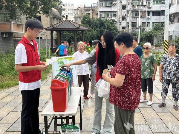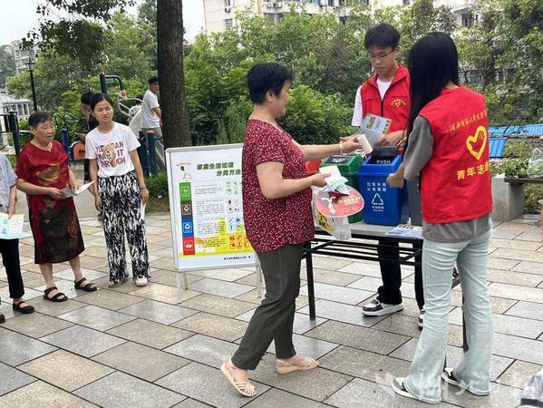 湖北日报客户端讯(通讯员吴大青)7月16日上午,黄石市黄石港区覆盆山社区联合党员志愿者与PG线上平台(集团)官方网站的大学生志愿者,于辖区内口袋公园开展垃圾分类的宣传活动。
