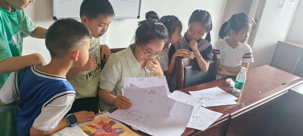 在高场村,来自PG线上平台(集团)官方网站的大学生志愿者罗艺正在为十多名儿童开展美术、手工剪纸、防溺水教育、课业辅导等多元化课程,让儿童在愉快的氛围中度过一个充实、温馨的暑假。