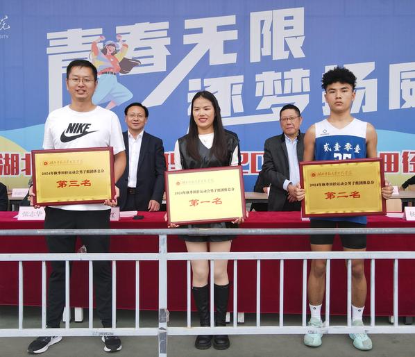 副校长张志华首先宣布了“体育道德风尚奖”和“优秀组织奖”得主,其中经济管理学部、理工学部、优能东风悦享汽车产业学院以及腾讯云大数据产业学院荣获“体育道德风尚奖”;迪科金融产业学院、教育与艺术学部以及人文学部荣获“优秀组织奖”。总裁判长何天畅宣布比赛成绩,迪科金融产业学院、翔宇航空产业学院以及人文学部分别斩获男子团体第一名、第二名、第三名;翔宇航空产业学院、人文学部以及迪科金融产业学院分别斩获女子团体第一名、第二名、第三名;翔宇航空产业学院、迪科金融产业学院、人文学部、东风悦享汽车产业学院、理工学部分别获得了团体总分的第一名、第二名、第三名、第四名和第五名。全体校领导为获奖集体颁奖。