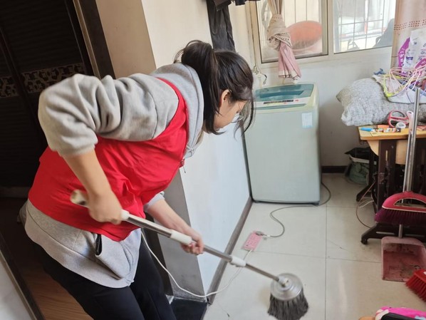 当天下午,志愿者走进老人们的家中,帮助老人们打扫卫生,清理杂物,通过大家的共同努力,老人们的家中变得整洁明亮起来。志愿者一边打扫卫生一边与老人聊起了家常,询问老人的健康状况、生活需求、饮食起居,并再三叮嘱老人要保护好身体,注意饮食卫生。