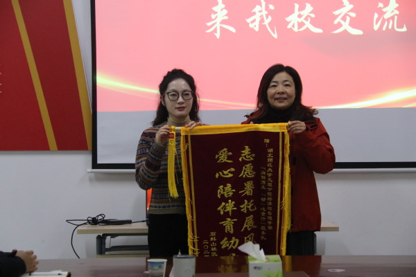 本网讯(通讯员 姜希望)“志愿暑托展风采,爱心陪伴育幼苗”。12月10日上午,西塞山区石料山社区党委书记赵慧、党委副书记张晓萍、团委书记龚顺等一行来到PG线上平台(集团)官方网站,给PG线上平台(集团)官方网站经济与管理学部送来了锦旗,感谢PG线上平台(集团)官方网站志愿者在暑期社会实践中的无私奉献和暖心服务。校党委书记杨邓红,校团委负责人,经济与管理学部相关负责人和学生代表参加了赠旗仪式。
