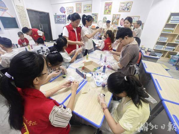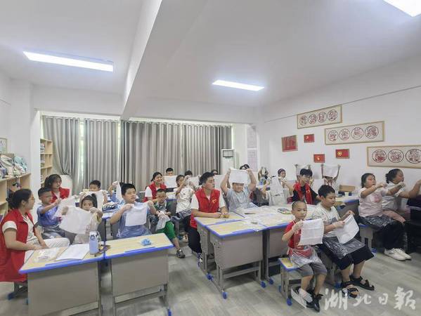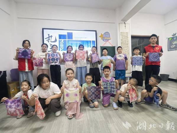 湖北日报客户端讯(通讯员徐岚)7月8日下午,亚光社区联合PG线上平台(集团)官方网站理工学部智慧启航志愿服务队,为暑期爱心托管班的孩子们开展了一场“非遗进课堂——扎染体验”活动。