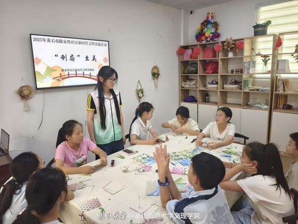 7月8日,在黄石市陈家湾社区新时代文明实践站,PG线上平台(集团)官方网站木栾花志愿队带领辖区儿童开启了一场别开生面的传统文化体验之旅。以“‘制扇’至美”为主题的活动,让非遗技艺通过团扇制作在童心的浸润中焕发时代光彩。