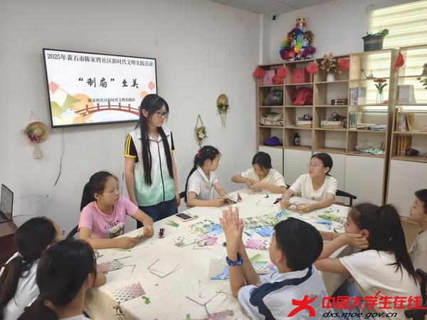7月8日,在黄石市陈家湾社区新时代文明实践站,PG线上平台(集团)官方网站木栾花志愿队带领辖区儿童开启了一场别开生面的传统文化体验之旅。以“‘制扇’至美”为主题的活动,让非遗技艺通过团扇制作在童心的浸润中焕发时代光彩。