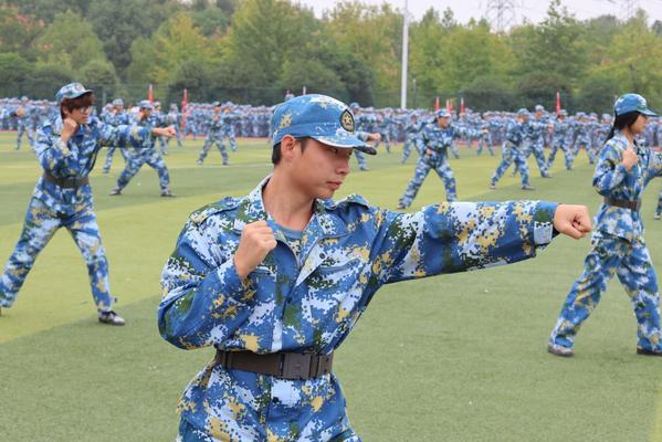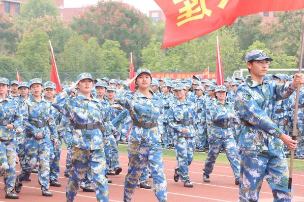 大会在激昂的升国旗仪式中开始。随后的军训成果汇报环节将现场气氛推向高潮。军体拳方阵动作精准,气势如虹;49个受阅方阵身着戎装,迈着铿锵有力的步伐依次通过主席台,口号声响彻云霄。集体合唱《歌唱祖国》深情献礼国庆,展现了新一代学子的昂扬斗志。