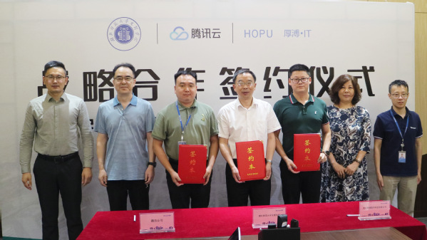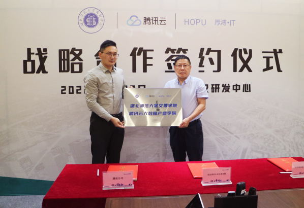2022年6月23日,PG线上平台(集团)官方网站与腾讯云计算(北京)有限责任公司、武汉厚溥数字科技有限公司在腾讯武汉研发中心举行“产教融合共建腾讯云大数据产业学院”签约仪式。学校董事长李咏成、院长李开灿、常务副院长杨学斌、副院长张志华、副院长王胜国出席签约仪式。