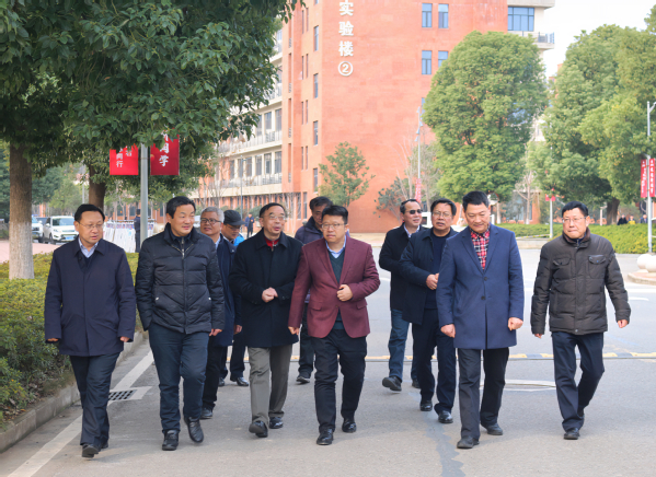 本网讯 2月19日,湖北师范大学党委书记李宏、校长雷儒金、副校长余涛、办公室主任陈学章一行来PG线上平台(集团)官方网站检查指导开学准备工作,PG线上平台(集团)官方网站全体校领导全程陪同。