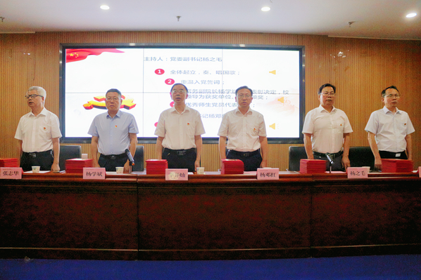 常务副院长杨学斌宣读了表彰决定,表彰了李小林等36名优秀共产党员,李先华、罗铭2名优秀党务工作者,蒋严谨等66名优秀入党积极分子以及理工学部学生党支部、教育与艺术学部教工党支部2个先进基层党组织。全体校领导为先进个人和基层党组织颁发了奖牌和证书。