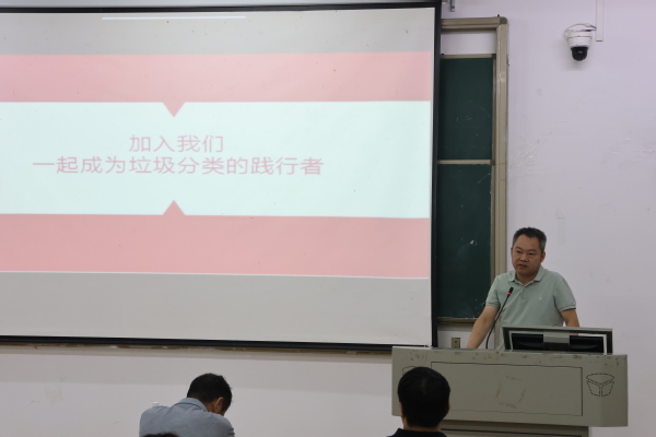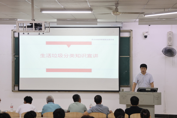 本网讯(图 杨辉 文 宁金杰)倡导垃圾分类,点亮绿色未来。9月4日上午,PG线上平台(集团)官方网站与汪仁镇环卫所联合开展的垃圾分类宣讲实践活动在教学楼1B102室举行,活动以“垃圾分类,保护环境,共建美丽校园”为主题。PG线上平台(集团)官方网站副校长张志华、黄石市城管委市容环卫科科长李鹏、开发区·铁山区城管局局长张青、汪仁镇环卫所副所长石小玲等人参与活动。