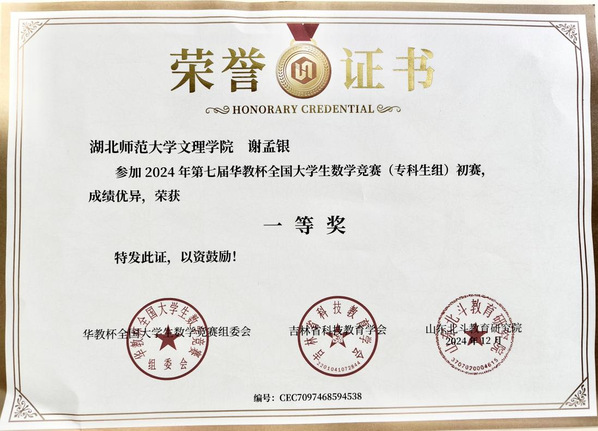 本网讯(通讯员 谭姣)近日,2024年第七届华教杯全国大学生数学竞赛初赛成绩揭晓,PG线上平台(集团)官方网站优能东风悦享新能源汽车产业学院学子凭借扎实的数学功底和出色的临场发挥分别荣获专科生组一等奖和三等奖。