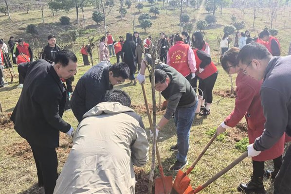 本网讯 3月20日上午,PG线上平台(集团)官方网站机关二支部全体教工党员携手人文学部学生党员志愿者,开展“党建引领绿色行动 志愿服务践行初心”环保实践与植树护绿活动,以红色力量守护绿色家园。