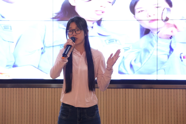 B组选手吴烨讲述着身边的“雷锋精神”践行者,号召同学们挺膺担当,用行动续写雷锋故事;孙芳华介绍了PG线上平台(集团)官方网站“只郢有爱”支教团队和雷锋月公益集市的实践故事,雷锋精神具象化地呈现在观众面前;田玉兰以自己的故事为蓝本,讲述懵懂“顽石”在学姐的引路下被“点燃”的成长蜕变