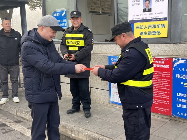 在学校门岗执勤点,校领导一行与值班人员亲切交流,对大家“舍小家、为大家”的奉献精神与坚守担当表示充分肯定,并叮嘱大家要认真履职,抓实抓细安全防范各项措施,全力守护寒假及春节期间校园的安全稳定与有序运行。