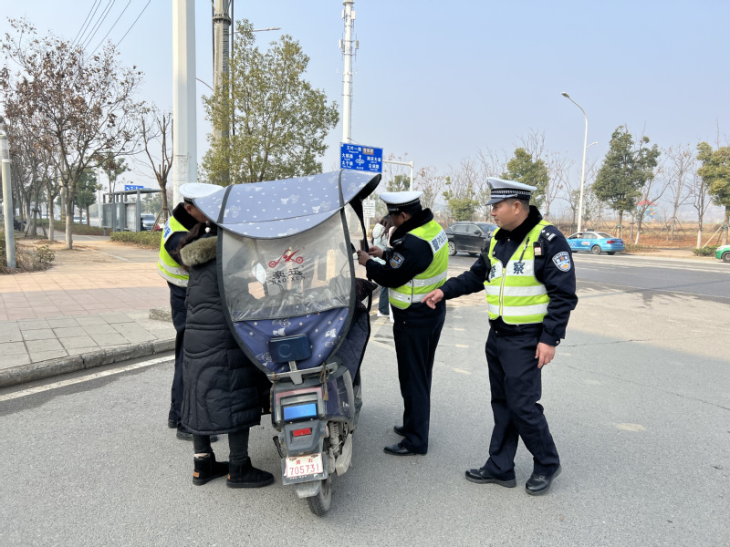 “同学,骑电动车一定要戴好头盔”“车上不能加装遮阳棚”“不能违规载人”,在场民警坚持教育与处罚相结合的原则,通过《中华人民共和国道路交通安全法》和《黄石市电动车管理条例》等法律法规讲解,向师生员工们普及日常出行交通安全知识,积极引导师生员工自觉遵守交通法规。
