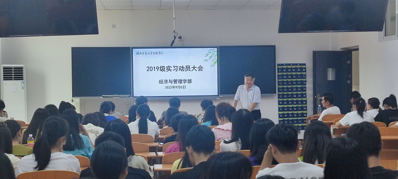 2022年9月8日下午2点,经管学部于2号实验楼403召开了2019级实习动员大会,经管学部主任商树松、专业负责人葛子明、辅导员姜希望以及武汉京东物流相关负责人参会。