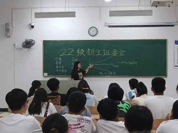 接着,学部召开了22级新生班委会。会议邀请了21级优秀班干部对新生班委进行工作职责介绍和经验分享,旨在为22级新生班委传授工作经验,提出工作要求,树立工作目标。班委会成员要做好老师和同学之间的桥梁,及时接收和执行老师分配下来的任务,在班级管理上既要统筹全局,又要细致入微。对同学们多一些关心和包容,积极调动大家的积极性,共同创建积极向上的班集体。