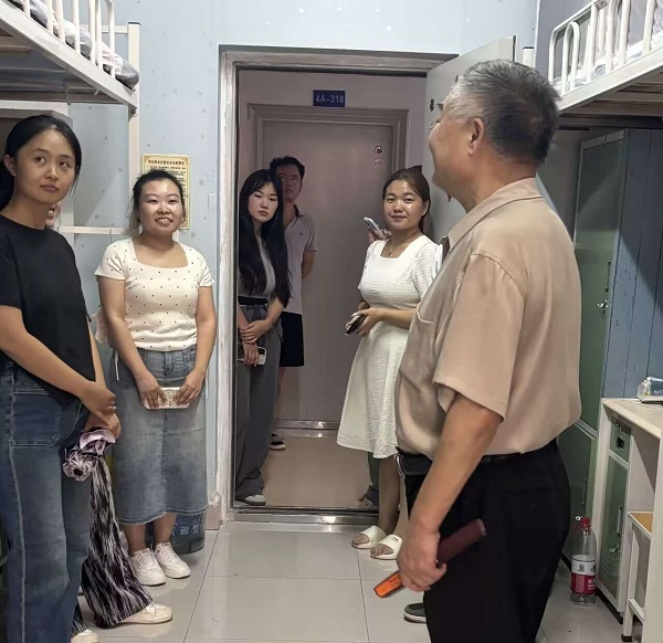 在走访中,学部领导老师们与新生亲切交流,细致询问了新生情况,是否适应学校生活,以及对未来学习的规划与期待,耐心倾听学生们关于餐饮、住宿等方面的反馈,迅速拉近了彼此间的距离。此外,着重叮嘱大家要特别加强安全防范意识,避免上当受骗,希望同学们保持宿舍卫生,营造温馨住宿环境,多与老师同学沟通交流,尽快融入班级和学部大家庭。同时,对新生关心的问题给予了耐心地解答,希望新生做好职业规划,明确目标,扎实学习,积极实践,勇于创新。遇到困难时要及时向老师报告,学部领导作为坚强后盾,会时刻为同学们保驾护航。