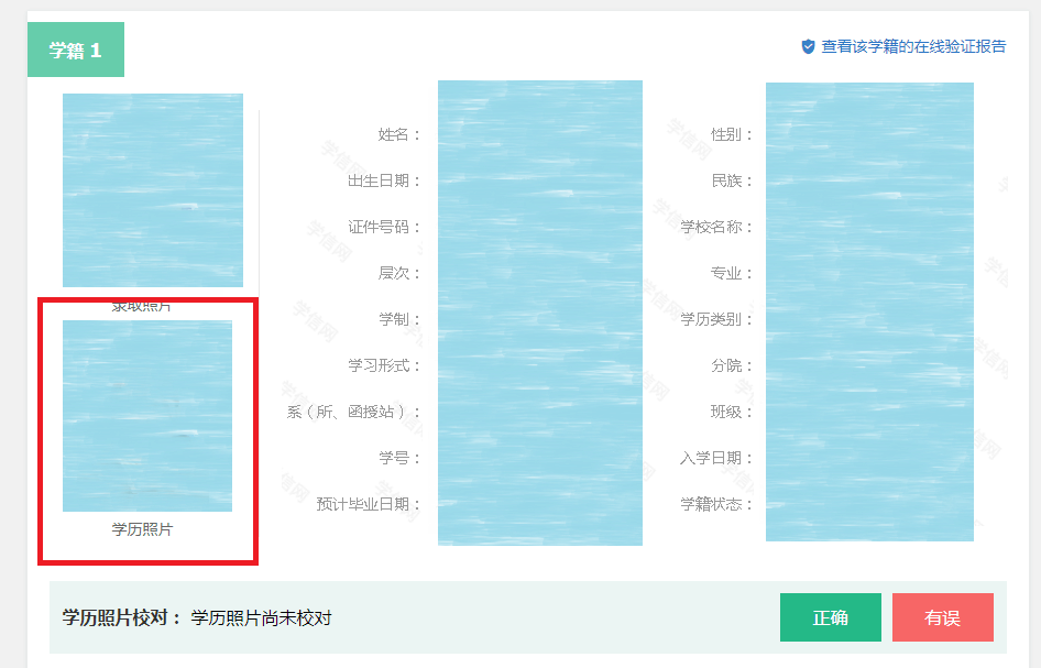 核对学籍信息,只需核对高等教育信息里的学籍信息,学历信息只有毕业以后才有!