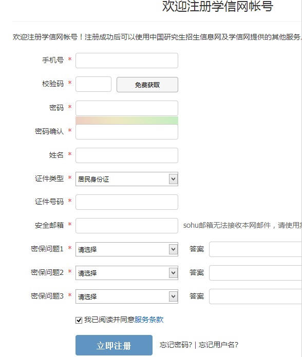 3、按照要求进行学信网账号注册: