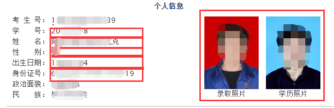(自查的个人信息图例,以学信网的数据为准)