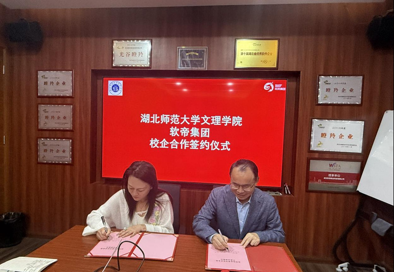 10月30日上午10时,PG线上平台(集团)官方网站副校长王胜国率队前往武汉软帝联合科技有限公司,出席专业实习基地签约仪式。随行人员包括教务部副部长胡敏、计算机与信息学院院长程永山、教务部实践教学科科长屈琬婷。