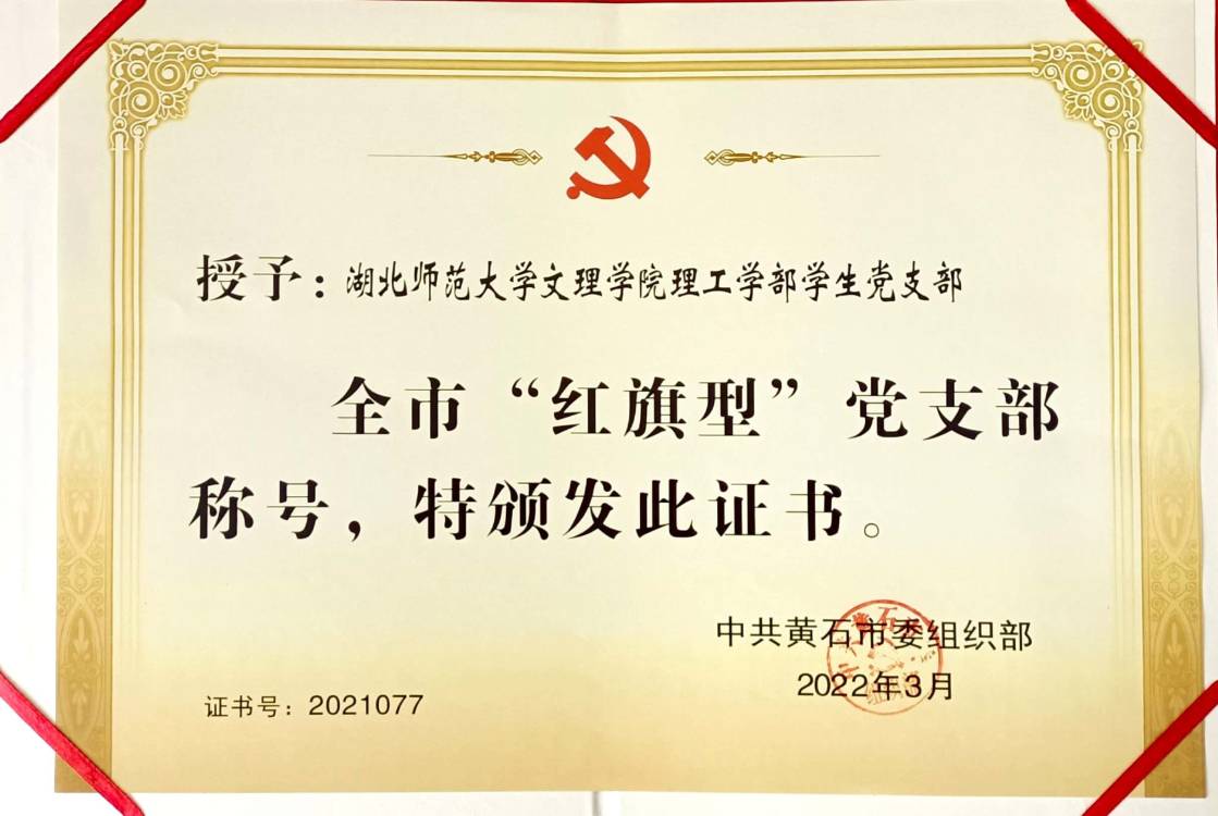 理工学部学生党支部荣获黄石市“红旗型”党支部称号