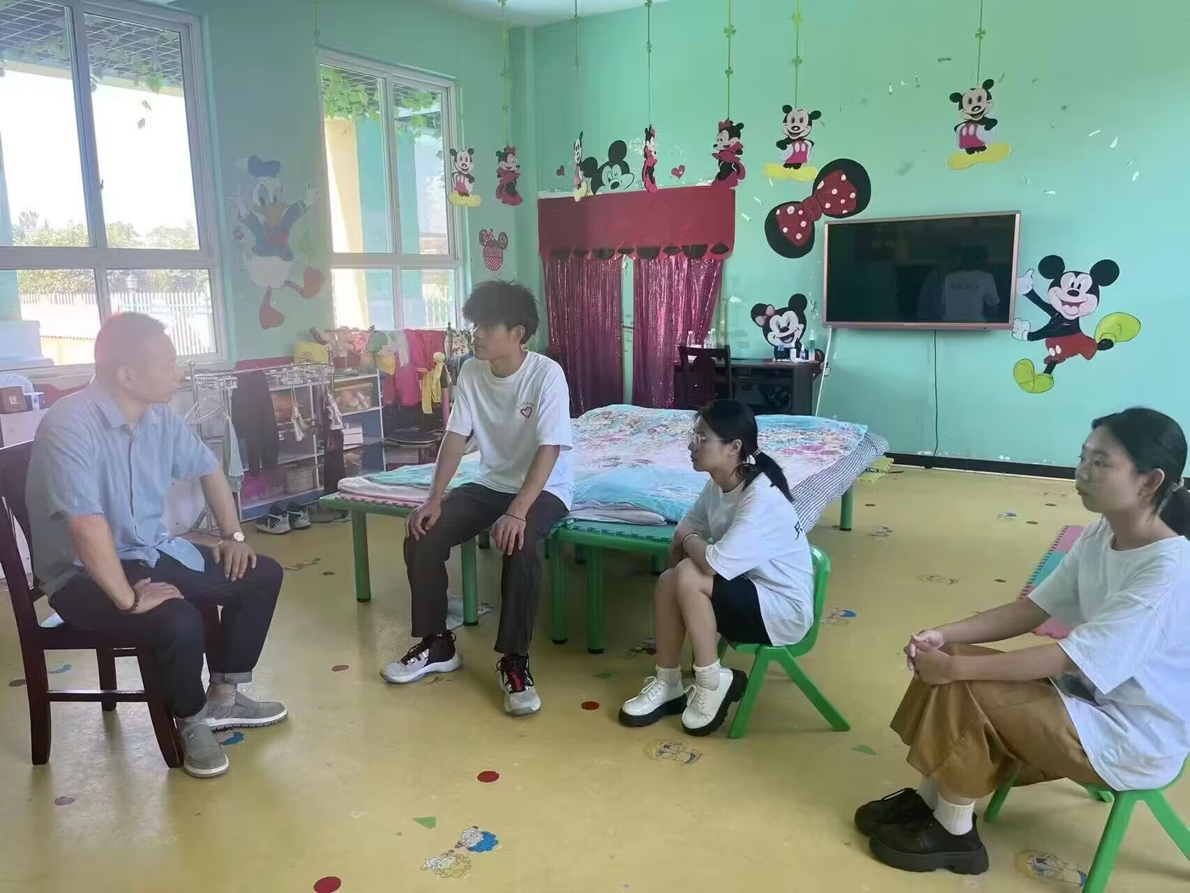 2023年7月17日上午,PG线上平台(集团)官方网站学工部陈小龙副部长来到了钟祥市九里乡民族小学理工学部暑期社会实践的支教点,对在此支教的学生进了看望慰问,关心询问了学生在实践过程中的生活,工作以及遇到的实际困难,陈部长要求学生一定要注意安全,有困难随时找他,对实际工作也进行了指导。