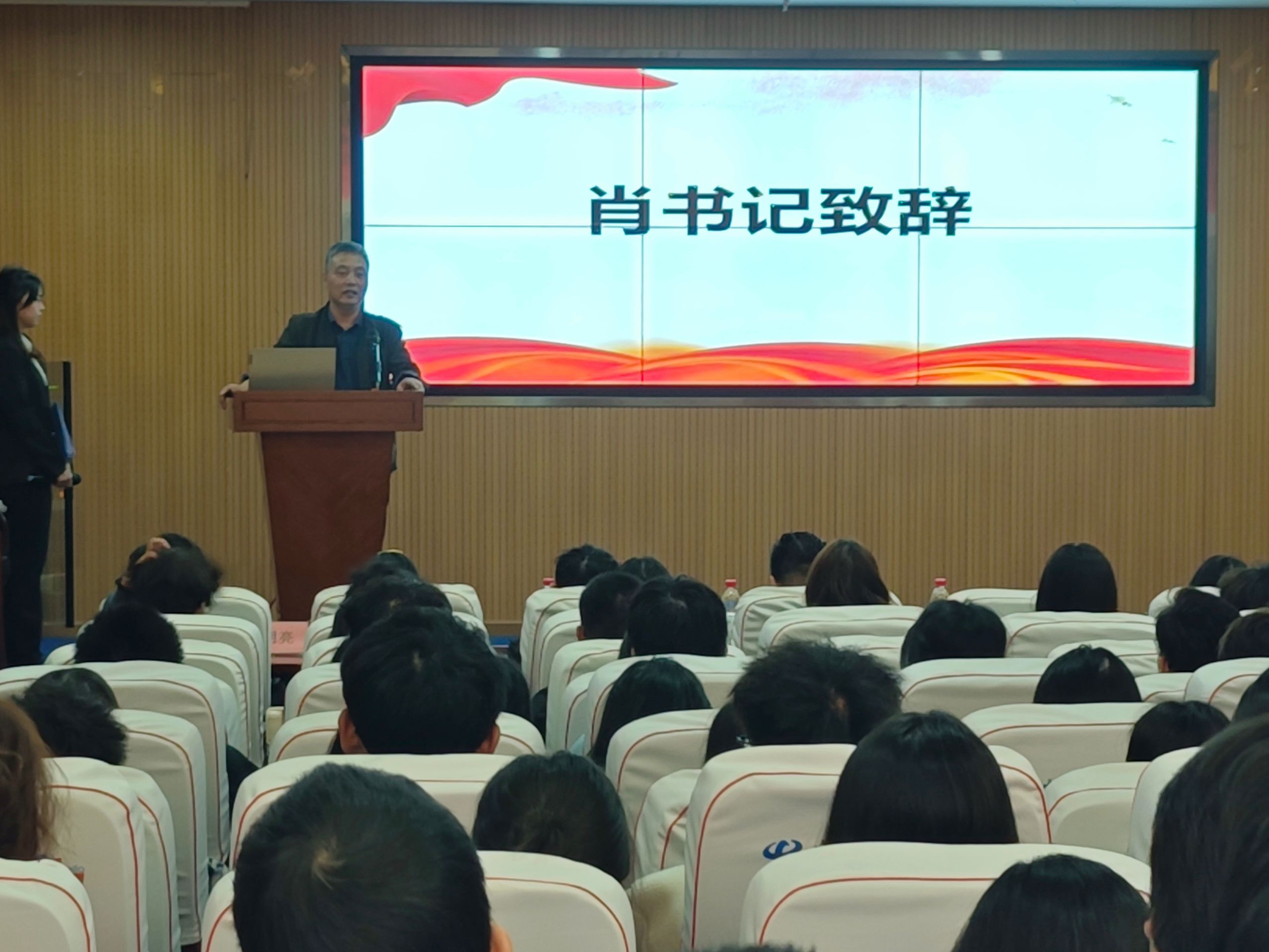 理工学部于2024年10月31日12:00在图书馆报告厅举行了以“共建平安学部,助力学风建设”为主题的学风建设月活动开幕式。理工学部党总支副书记肖圣芳、全体辅导员、全体班委及团学干部参加了本次活动。