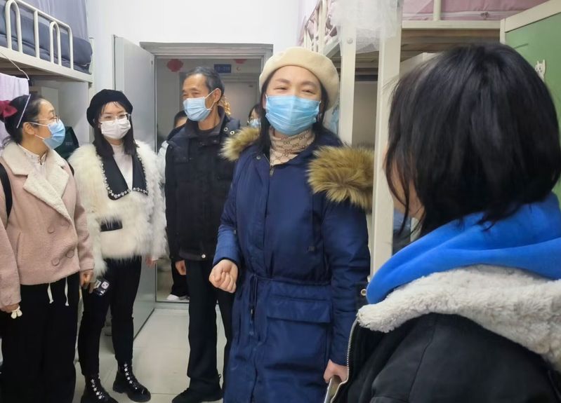 在走访过程中,老师们与学生们交流、谈心,提醒学生们尽快调整作息习惯,调整好状态回归学校生活。查寝期间,胡文玉老师走访了大四毕业生的寝室,关注并了解她们毕业论文的完成情况以及毕业动向。熊子延老师和汪玉宝老师则向同学们普及电信诈骗的危害及防诈骗的案例,加强防诈骗的意识。同时,各个辅导员分组走访所带的本科生、专科生寝室,并鼓励专科学生努力专升本,提醒本科生提前准备考研和备考教师资格证。