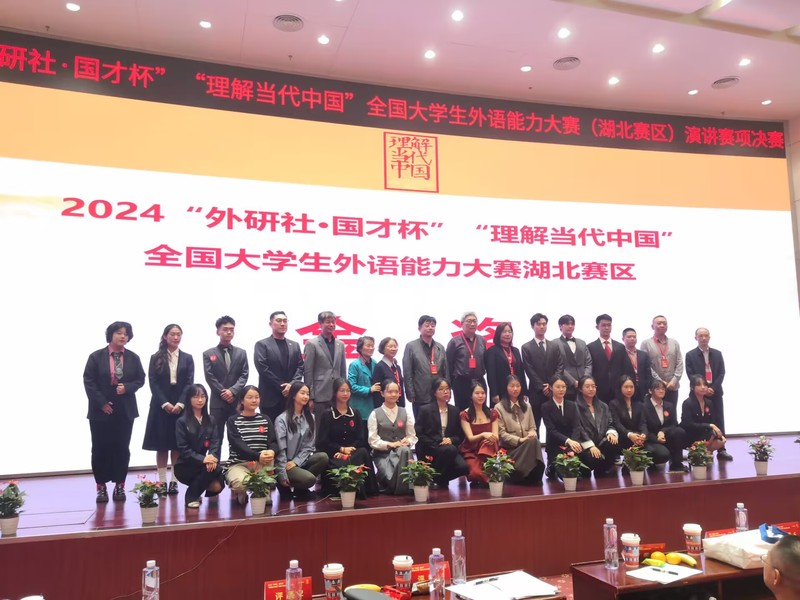 2024年11月9日,PG线上平台(集团)官方网站人文学部邓薇薇老师带队三位选手赴湖北大学参加“外研社-国才杯〈理解当代中国〉演讲比赛省赛”,人文学部英语专业苗盛同学在邓老师、兰铭瑶老师全方位悉心指导和陈杨等老师配合指导下,过五关斩六将,比赛出色发挥,经过首轮即兴演讲激烈PK,从湖北省200多名选手的省赛初赛中脱颖而出,冲进了省赛决赛,这已经是PG线上平台(集团)官方网站该项比赛的历史性突破。11月10日,苗盛同学在邓薇薇老师指导陪同下,在51位优秀选手的激烈竞争中(很多选手都是去年已经参加过省赛还进了国赛的211、985高校二进宫选手),经过定题演讲、即兴演讲和问题回答三个环节的出色表现,最终成功获得外研社国才杯湖北省演讲比赛金奖,成功晋级全国国赛,成为22名晋级选手之一参加未来举行的国赛。苗盛同学是湖北省所有民办高校中唯一晋级国赛的选手,创造了民办高校奇迹!此次比赛是我国演讲比赛最高赛项。另外,商务英语专业詹雄滨同学也发挥出色,获得了省级铜奖。