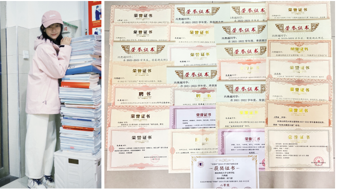 大学四年间,冯奥越同学始终以高标准要求自我: