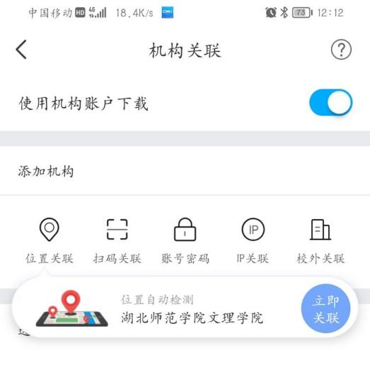 登录账号后,在校园内,手机定位开启的状态下,点击“立即关联”,选择“位置关联”,即可关联到学校,返回首页即可正常使用。整个寒假都可在家使用手机知网了!